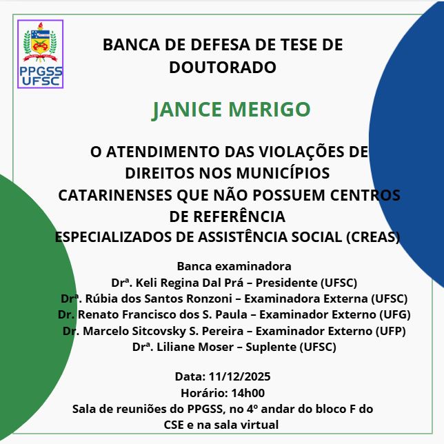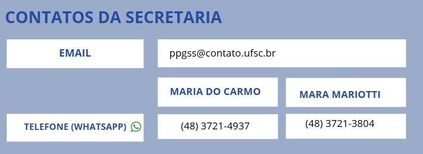Dúvidas e Envio de documentos: ppgss@contato.ufsc.br