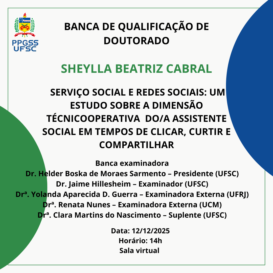 Banca de Qualificação de Tese de Doutorado de Sheylla Beatriz Cabral