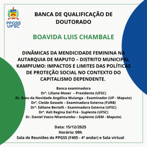 Banca de Qualificação de Projeto de Tese de Doutorado de Boavida Luis Chambale