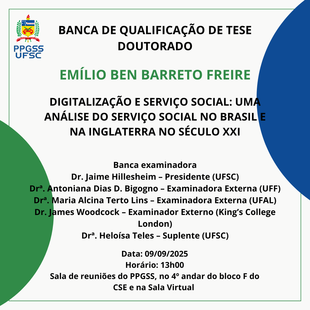 Dúvidas e Envio de documentos: ppgss@contato.ufsc.br