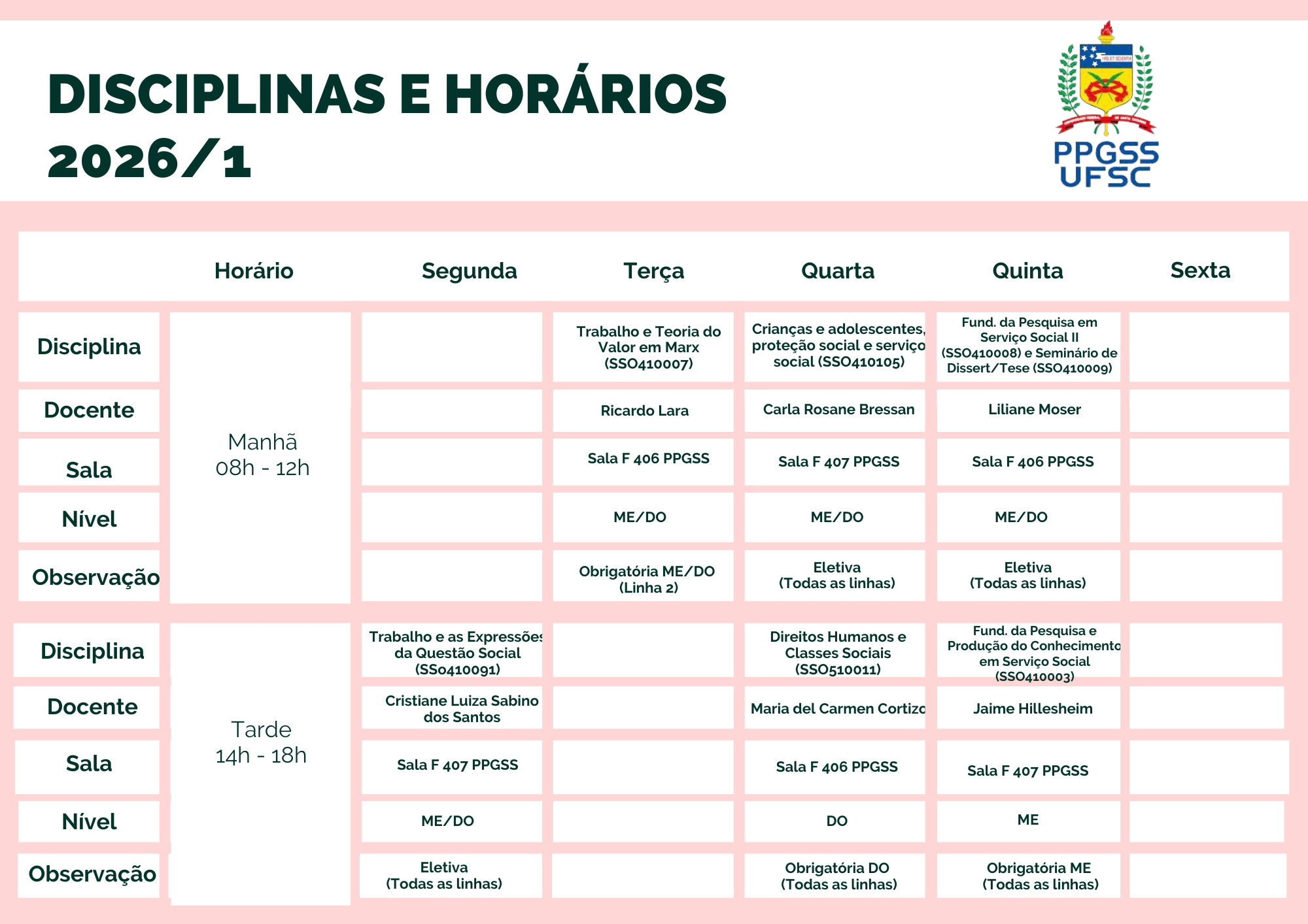 Fundamentos da Pesquisa e Produção de conhecimentos em Serviço Social II: A questão do método, a produção de conhecimentos e a pesquisa em Serviço Social. A pesquisa em Serviço Social, sua produção de conhecimentos e a relação com as demais áreas do saber na contemporaneidade. A ética e a política na produção de conhecimentos em Serviço Social. Seminário de Dissertação e Tese: O Projeto de Pesquisa. A problematização e a definição do objeto de pesquisa. A escolha dos procedimentos metodológicos. Os impasses do pesquisador. Desafios éticos do pesquisador e os sujeitos da pesquisa. |